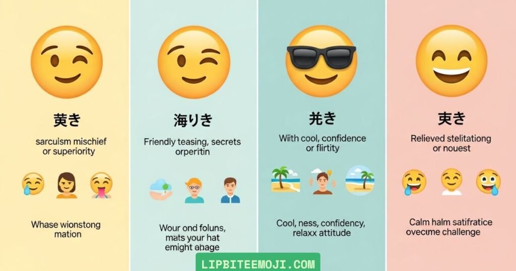 Many people confuse the smirk emoji meaning with other similar emojis. The 😌 emoji feels calm and satisfied, while 😎 shows confidence in a cool and relaxed way. The πŸ˜‰ emoji signals a friendly wink, often used in light flirting.